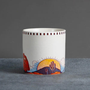 Pack Contains - 2 Travel theme coffee mugs, 1 handpainted essence diya Lavender fragrance, 1 Basil grow kit, 1 Message bottle with Diwali wishes