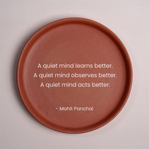Enhance your space with this elegantly handcrafted terracotta wall plate featuring the profound quote, "A quiet mind learns better" by Mohit Panchal. The timeless wisdom inscribed on this art piece serves as a gentle reminder of the power of calm and focus in the learning process. Perfect for creating a serene environment in your study or meditation area, this plate combines artistry with meaningful inspiration, offering a touch of tranquility and encouragement for personal growth.Â