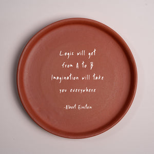 Crafted from natural terracotta, this 8-inch wall plate is more than décor — it's daily inspiration. Featuring Albert Einstein’s powerful words, “Logic will get you from A to B. Imagination will take you everywhere,” this piece sparks creativity and curiosity. Perfect for workspaces, reading corners, or mindful living zones. Sustainably made, hand-finished, and designed to inspire limitless thinking — every day.