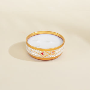 Experience the warm embrace of our 3 wick handpainted terracotta essence diya, infused with the enchanting fragrance of amber. This beautifully crafted diya blends traditional artistry with the rich, sweet scent of amber, creating a cozy and inviting ambiance. Perfect for enhancing your space with a touch of elegance and warmth, ideal for moments of relaxation and reflection.