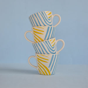 Sip in style with this set of 4 ceramic tea mugs, designed for elegance and everyday comfort. Featuring a sleek matte finish, each mug is adorned with a modern yellow and blue line pattern, adding a touch of sophistication to your tea time. Crafted for durability and a comfortable grip, these mugs are perfect for both casual and special moments. Elevate your drinkware collection with this chic and timeless set!