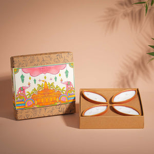 Pack Contains: 4 petal-shaped diya with golden rim