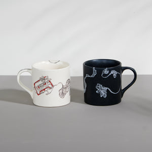 Turn back time with our retro-inspired coffee mug set! Featuring a reverse design of cassettes in matte black and white, these mugs are perfect for sipping your favorite brew while reminiscing about the good old days.