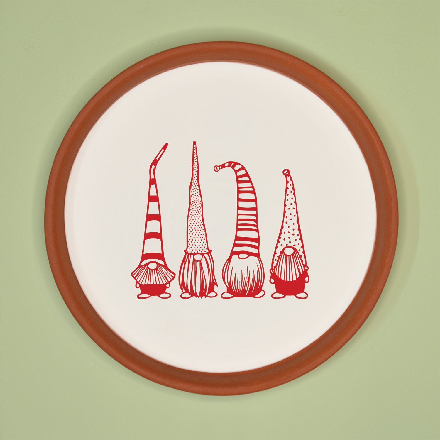 Terracotta Wall Plates - Christmas Illustration Of Elfs