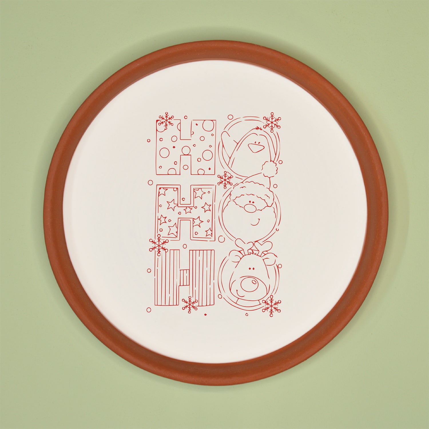 Terracotta Wall Plate - Christmas Illustration HO HO HO