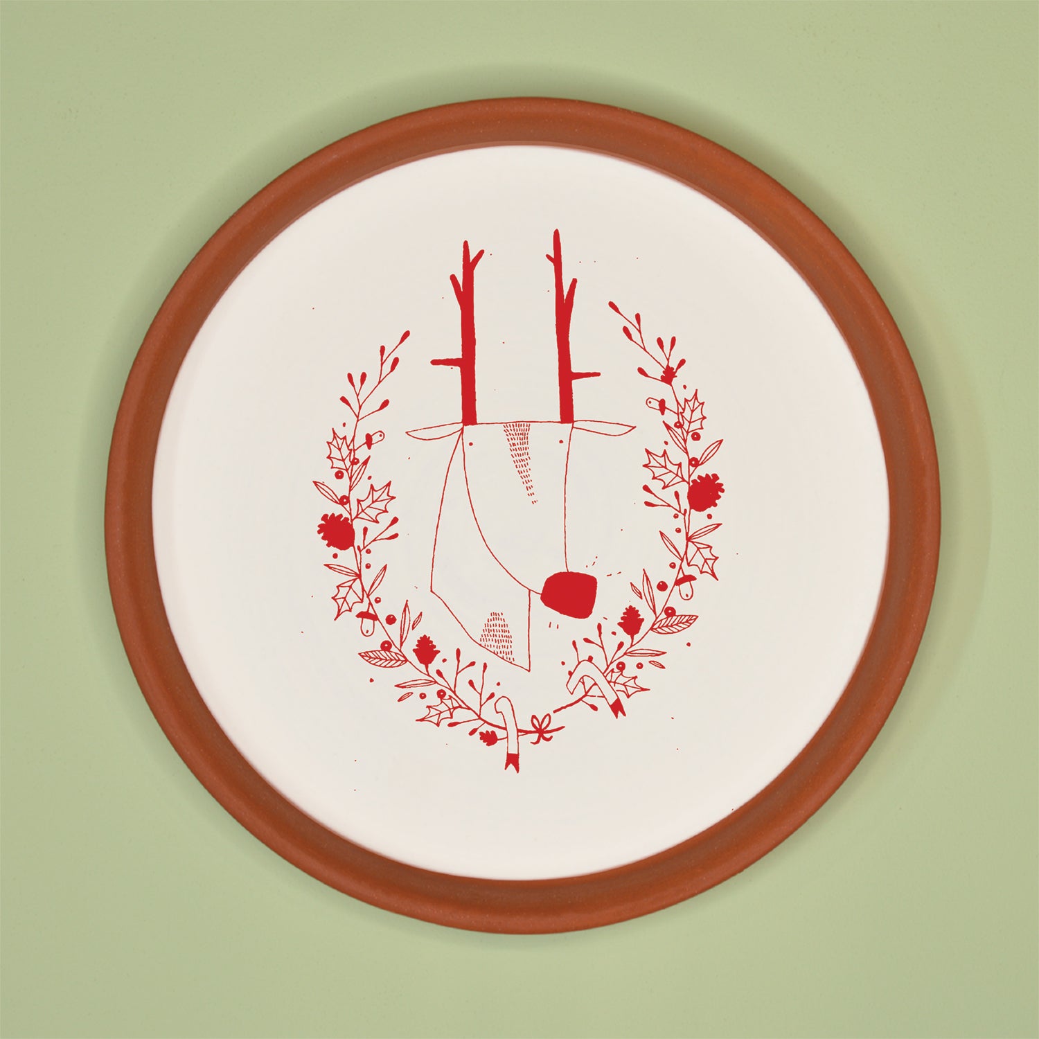Terracotta Wall Plate - Christmas Illustration of Reindeer