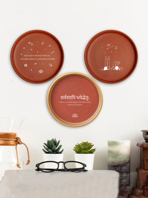 Immerse yourself in the wonders of the cosmos with this set of three handcrafted terracotta wall plates, thoughtfully designed for those who believe in the universe and its mysterious forces. Each plate is beautifully hand-painted, capturing the essence of celestial energy:
