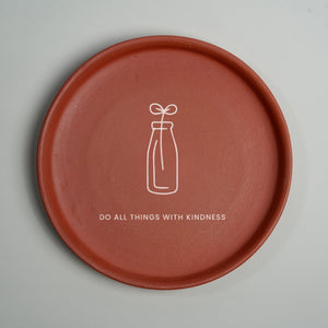 Elevate your home decor with our exquisite terracotta wall plate, featuring the inspiring caption "Do All Things with Kindness." This beautifully crafted piece, adorned with a delicate plant stem in a bottle, serves as a gentle reminder to infuse kindness into every aspect of your life. Perfect for adding a touch of rustic charm and positivity to any space.
