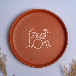 Bring the rhythm of creativity into your space with this vibrant terracotta wall plate featuring a dynamic drum set print. Handcrafted with precision, this art piece captures the essence of music and the energy of a live performance. The detailed illustration of the drum set adds a touch of lively rhythm to your decor, making it a perfect addition for music lovers, musicians, or anyone who appreciates the art of sound. Celebrate the beat of life and infuse your home with a sense of musical inspiration and artistic flair.