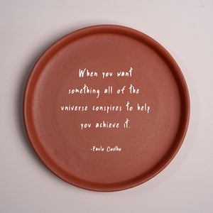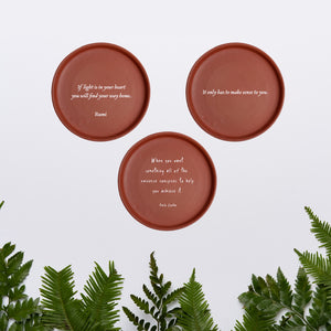This set of 3 terracotta wall plates brings home soulful reminders to trust your path, your purpose, and your light. Featuring timeless quotes by Rumi and Paulo Coelho, each plate is hand-finished in natural terracotta and etched with messages that awaken clarity and inner peace. Perfect for meditation corners, study walls, or thoughtful gifting—this set becomes more than décor; it's daily inspiration in earthy form.