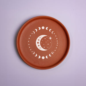 Illuminate your space with this enchanting terracotta wall plate, beautifully adorned with the phases of the moon. Handcrafted with care, this art piece captures the celestial journey from the new moon to the full moon, celebrating the ever-changing beauty of the lunar cycle. The intricate print showcases the moon’s phases in elegant detail, adding a touch of cosmic charm to any room. Perfect for lovers of astronomy or those seeking a reminder of life's natural rhythms, this plate brings both beauty and inspiration to your home.