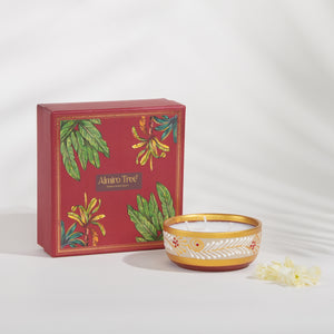 Elevate your ambiance with our 3 wick handpainted terracotta essence diya, infused with the intoxicating fragrance of Mogra. This exquisite diya combines traditional craftsmanship with the alluring scent of jasmine blossoms, creating a serene and fragrant atmosphere. Perfect for enhancing your space with a touch of elegance and a soothing floral aroma, ideal for moments of relaxation and reflection.