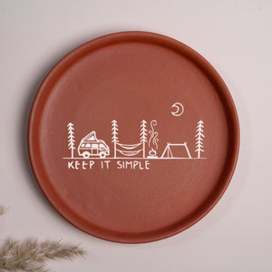 Terracotta Wall Plate - Illustration Of Camping With Caravan Van