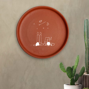 Terracotta Wall Plate - Night Sky Watching Illustration