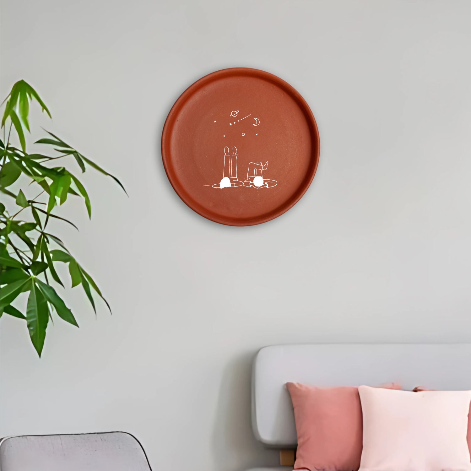 Elevate your home decor with our exquisite terracotta wall plate featuring a mesmerizing night sky gazing art. Handcrafted with care, this unique piece captures the serene beauty of stargazing, bringing a touch of tranquility and elegance to any space. Perfect for art lovers and stargazers alike!