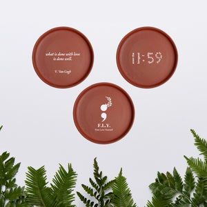 This inspiring set of 3 terracotta wall plates is a heartfelt reminder to choose love, resilience, and self-worth every day. Handcrafted with a rich earthy tone, each plate features a meaningful design: