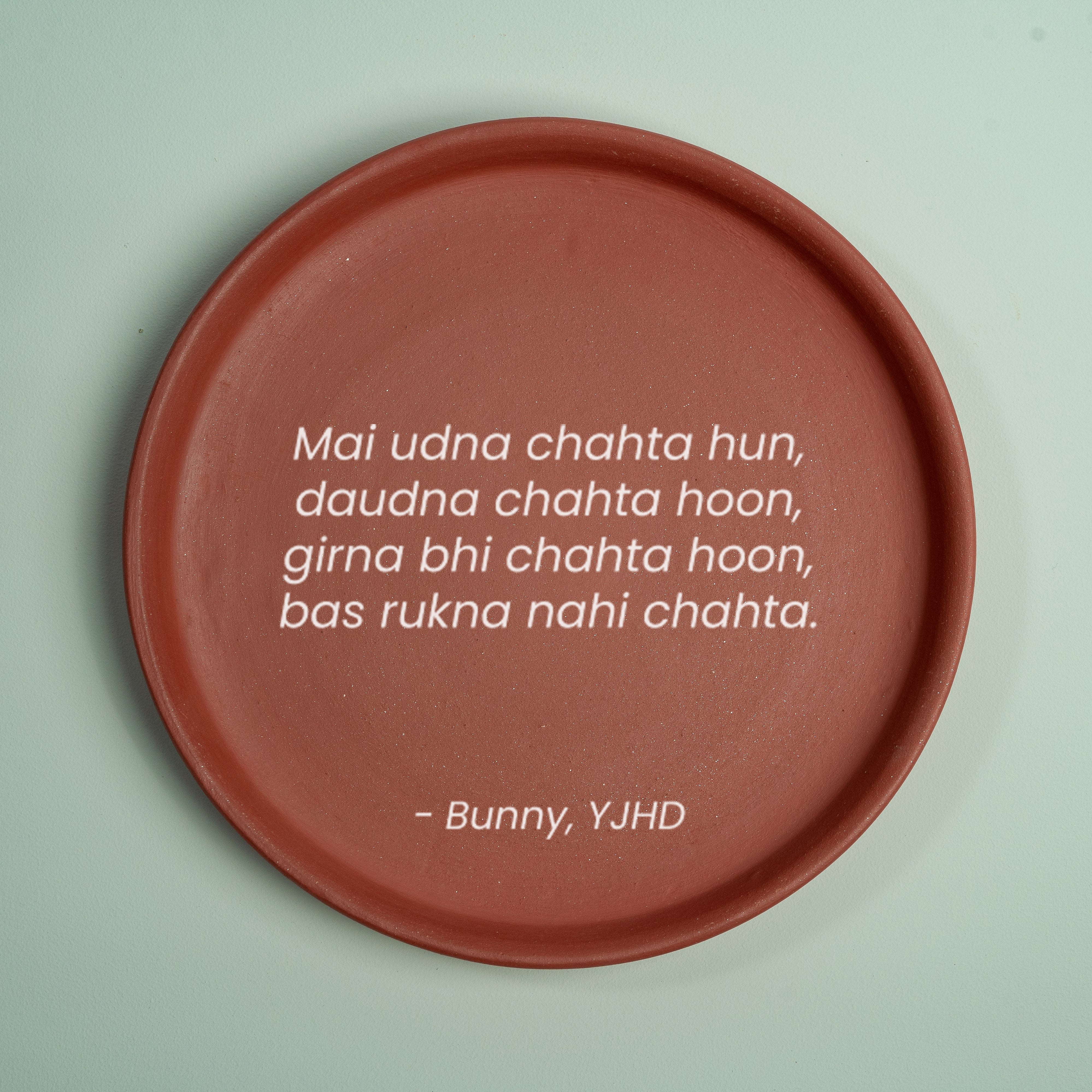 Terracotta Wall Plate - YJHD Quote - Mein Udna Chahta Hun by Bunny