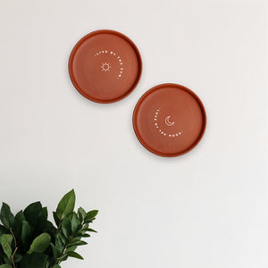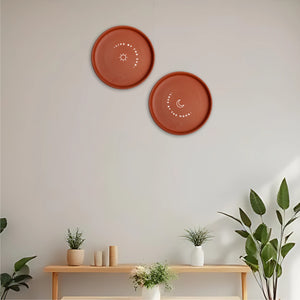 Terracotta Wall Plate Illustration Of Sun And Moon