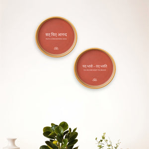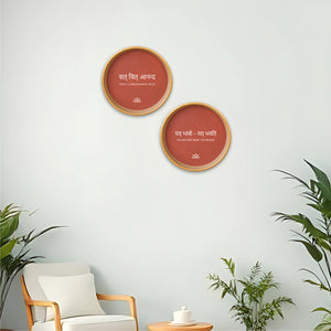 Enhance your space with this exquisite set of two hand-painted terracotta wall plates, featuring a delicate golden border and beautifully inscribed Sanskrit quotes. Crafted with precision, these plates blend tradition with elegance, making them the perfect statement piece for your walls. Whether you want to add a touch of spirituality, culture, or artistic charm to your home, this set is a timeless addition that exudes warmth and heritage. Perfect for gifting or personal décor, these plates celebrate the beauty of craftsmanship and meaningful art.