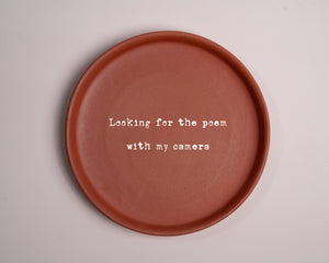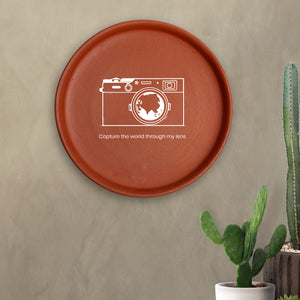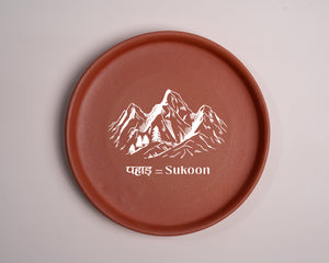 This set of 3 terracotta wall plates pays homage to wanderers, storytellers, and photographers. With quotes like “Capture the world through my lens” and “Looking for the poem with my camera,” it celebrates the art of seeing beauty in the ordinary. The hand-painted mountain silhouette paired with the Hindi word Sukoon (peace) evokes the serenity of travel and the joy of stillness. A perfect gift for creators, explorers, and dreamers who find poetry in every frame.
