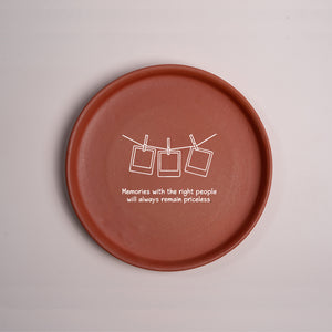 Capture the essence of cherished moments with this beautifully handcrafted terracotta wall plate, designed to celebrate Friendship Day. Featuring a simple yet meaningful illustration of hanging photo frames and the heartfelt quote “Memories with the right people will always remain priceless,” this piece honors the bonds that make life truly special. With its warm earthy tones and minimal design, it fits perfectly in cozy corners, living rooms, or workspaces. A thoughtful gift for your closest friends, this plate is a reminder that the best memories are made with the people who matter most.