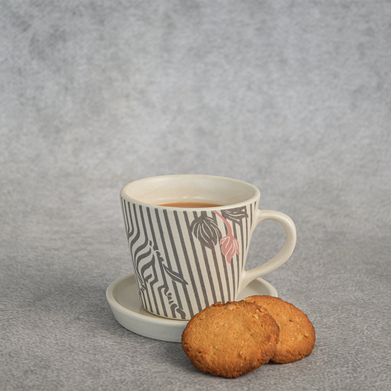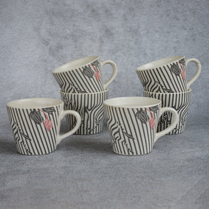 Experience the perfect blend of elegance and creativity with this set of ceramic tea mugs. Featuring a sleek matte finish, each mug showcases a striking zebra illustration emerging from grey vertical lines, symbolizing the beauty of perspective and illusion. Crafted for durability and style, these mugs add a modern artistic touch to your tea or coffee moments. Elevate your drinkware collection with this unique and eye-catching design!Â